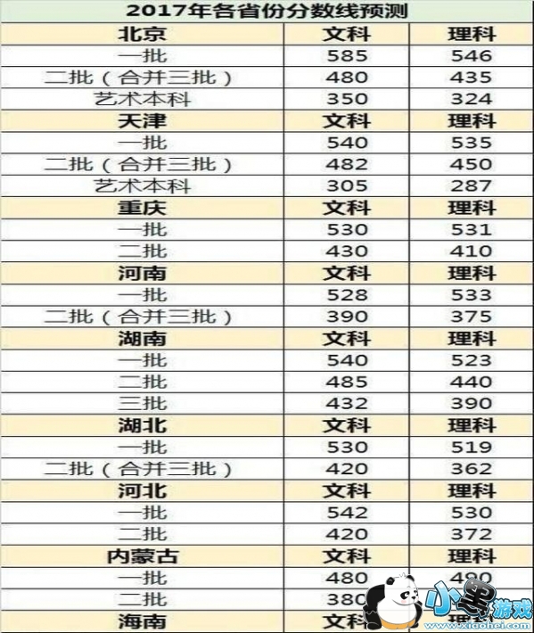 2017高考录取分数线预测(注:具体以实际为准以下只是参考分数)