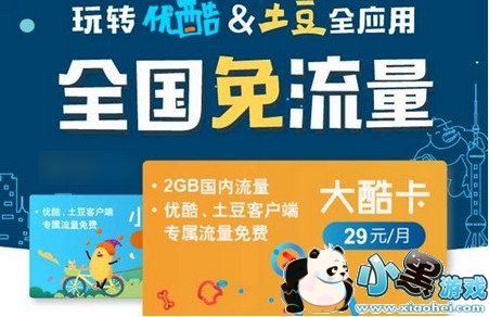 优酷大酷卡拥有2GB全国流量+优酷或土豆专属流量(40GB封顶)
