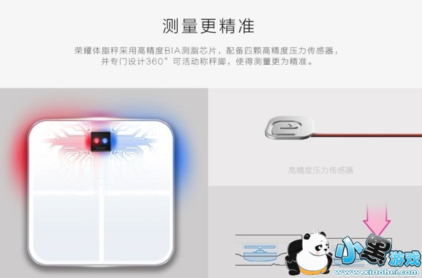 荣耀体脂秤配备4颗高精度压力传感器,能够精准到0.1kg,感知体重的细微变化。而且上文也介绍,荣耀体脂秤配备了可活动的秤脚,能让测量更准确。