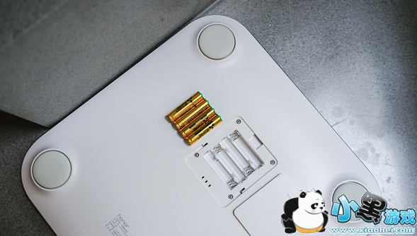 荣耀体脂秤整个背面是磨砂设计,中间是电池仓,出厂附送了4颗AAA规格(7号电池)的三菱原装电池,装上电池后蜂鸣器响起即表示开机。
