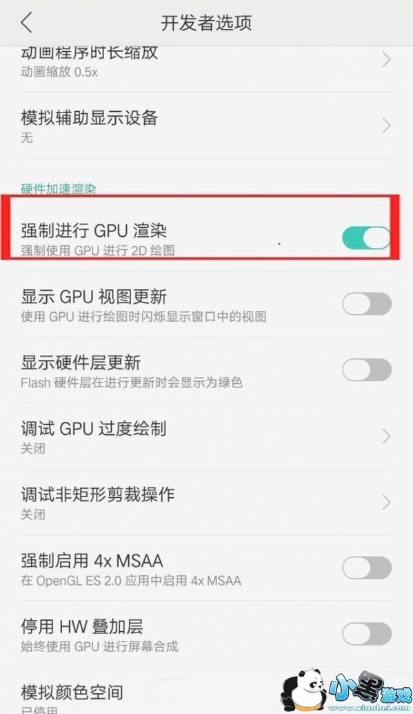 在手机的设置中就会出现【开发者模式后】选项,点击强制进行GPU渲染。强制后便可做到渲染整个画面,做到“指哪打哪”般的迅速和准确。