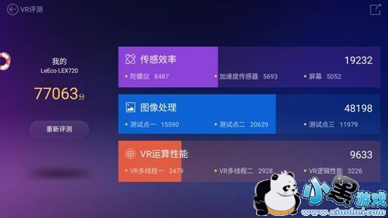 最后,「VR运算性能」是跟手机硬件性能挂钩的。包括「VR多线程一」,「VR多线程二」,「VR逻辑性能」三个测试项目。