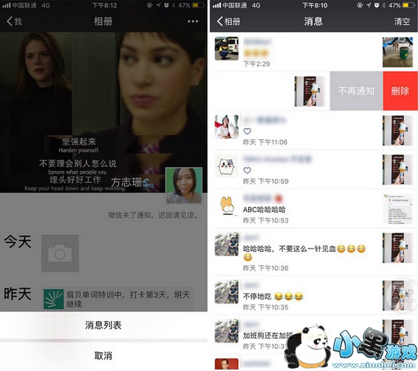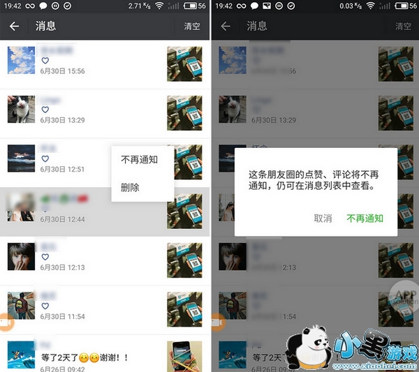 在新版微信中,Android的朋友在「我」-「相册」-右上角消息图标,进入评论列表后,长按某一条评论,就会出现「不再通知」和「删除」选项。