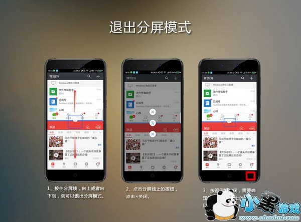 其次,点击分屏线中间按钮,用【×】关闭,想关闭哪个屏的应用就点击哪个屏上的叉叉;