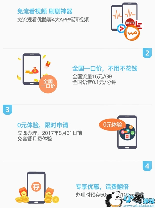具体来看,中国联通“畅视卡”的主要看点在于,可以免流观看优酷、乐视、BesTV和沃视频App内的标清视频,全国统一价,流量15元/GB,全国语音0.1元/分钟,2017年8月31日前可免套餐月费体验,同时办理时候预存50元,得100元话费。