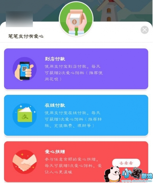 8月6日消息 继蚂蚁森林种树捐树后,支付宝又在APP客户端中推出了蚂蚁庄园爱心游戏,用户可以领养喂小鸡,笔笔支付都有爱心,支付宝到店付款,每天可以获赠2次爱心饲料;在线付款每天可以获得1次爱心饲料;另外还直接支持任意金额的爱心捐赠。