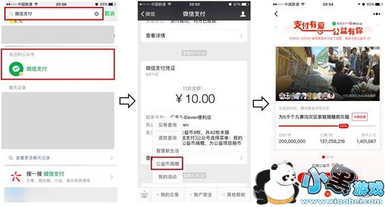方法一:使用微信支付完成线下消费后,进入“微信支付”公众号,根据“微信支付凭证”中的指引信息,即可查看捐赠项目页面;