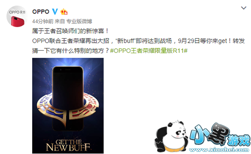现在,这最火的移动手游王者荣耀和最受年轻人喜欢的手机品牌OPPO联手“放大招”了。9月7日,OPPO官方微博预告称,OPPO R11王者荣耀限量版即将于9月29日正式登场。