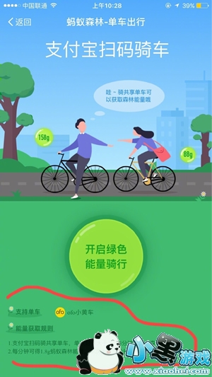 从今天起,进入蚂蚁森林攻略页面,手动开启绿色能量骑行功能后,用支付宝扫码骑行ofo超过3分钟,即可产生绿色能量了。
