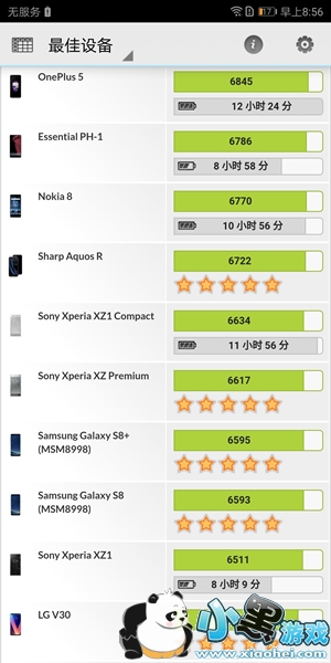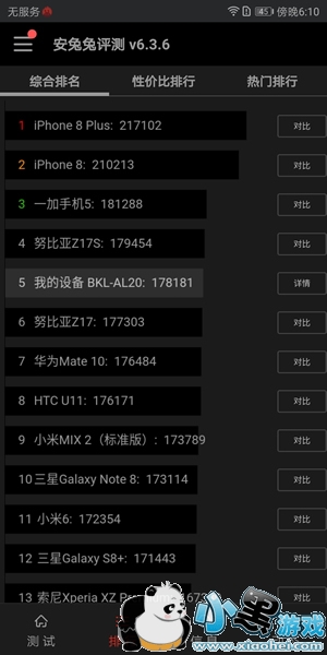 ↑↑↑荣耀V10的安兔兔跑分与排行