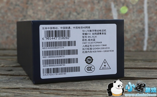 荣耀V10提供了4种外观、3种内存存储组合,笔者手中这款颜色为极光蓝配色,6+128GB版本。