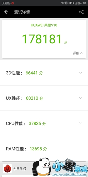 荣耀V10的PCMark跑分为6271,基本与LG V30持平。