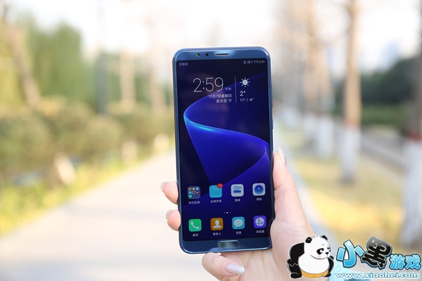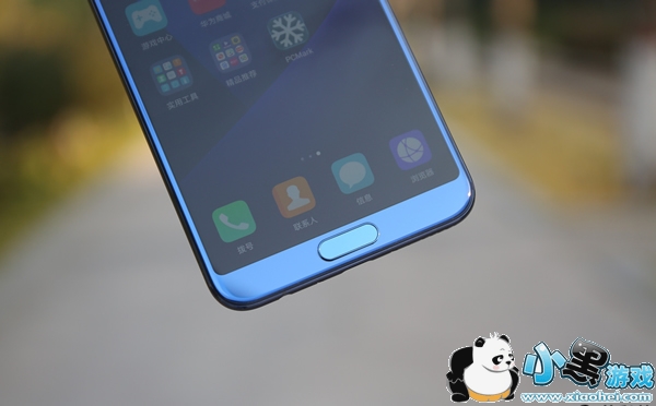 荣耀V10正面采用一块5.99英寸的屏幕,18:9比例全面屏设计,能有5.5英寸手机的握持感。下方为Home键,正面指纹的好处是即使是在桌面上玩手机依然能方便解锁。