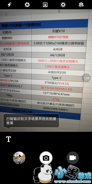 荣耀V10在拍摄过程中可以智能识别拍摄中的物体,并且对拍摄效果进行优化,比如说拍文字时会优化细节,而拍植物色彩还原更真实。