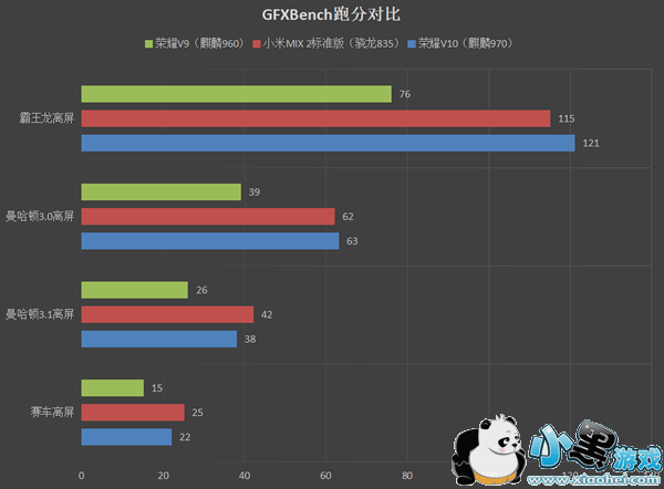 在GFXBench跑分中,荣耀V11在3D游戏方面略低于小米MIX 2,不过只有2到4分之差,而在3.0方面,则是超过了小米MIX 2。