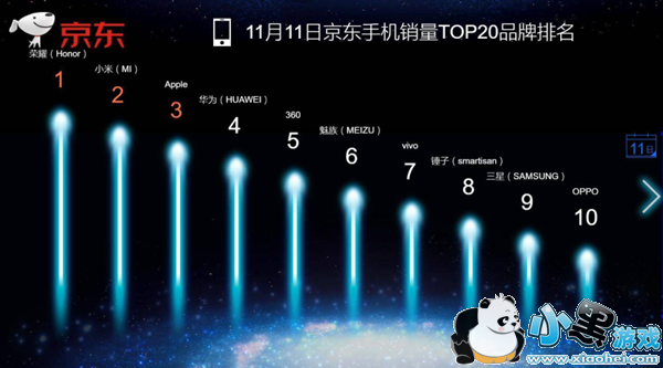 在2017年的双11活动中,荣耀在京东、天猫双平台总销售额40.2亿元,斩获2017年“双11”中国手机品牌冠军,并且在天猫平台2分34秒成交额就突破一亿元人民币。