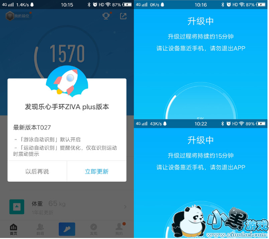 在绑定之后收到了手环升级的提示,于是便按提示升级了,升级速度很快,更新说明要15分钟,其实实际是8分钟左右吧