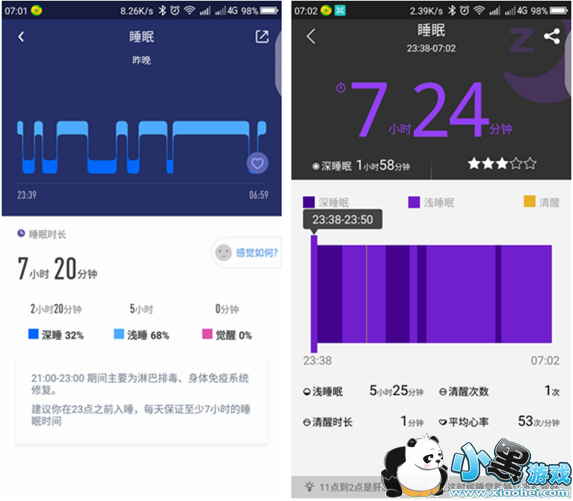 同时佩戴乐心手环ZIVA plus和bong3HR手环进行了三天睡眠监控,具体的数据如下面的图片所示。
