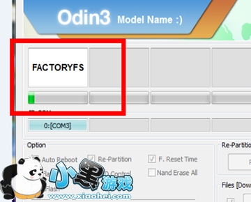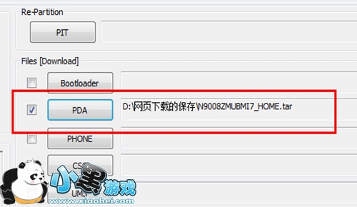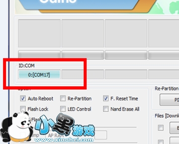4.打开odin软件之后软件会自动识别你的手机,识别成功后会在ID:COM处显示蓝色的(表示手机连接成功了,如果没有显示蓝色的,说明没有有连接好);然后勾选PDA,选择刚才下载解压出来的tar格式的rom包(注:不同的rom包名字不同)。