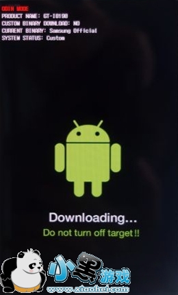2.再按【音量上键】,进入界面为绿色机器人,此为刷机模式,也就是大家常说的挖煤模式。