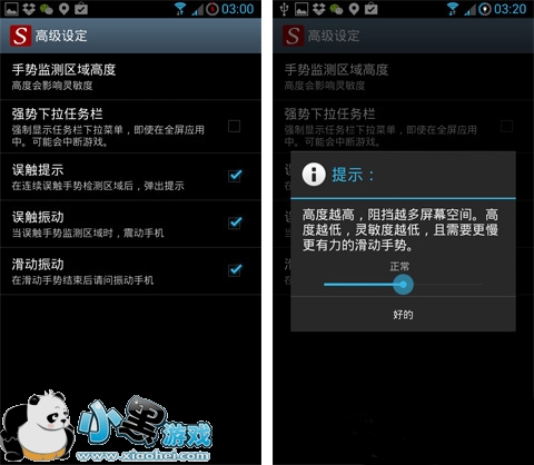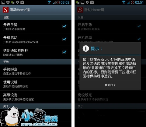 滑动HOME键,只看应用的名字多少也能猜到,这款APP可以让我们用手势来实现一些类似HOME键之类的操作。而与一些同类应用相比,它会显得更加小巧、纯净、容易使用。应用打开后,各项功能及设定在主界面上一目了然。每一个设置选项下面都有简单的说明,几乎无需多做额外的介绍。