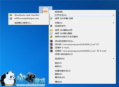 6.安装了模拟器之后,右键点击“植物大战僵尸2安卓版”游戏的安装包,从打开方式里选择“Bluestacks Akp Handler”,把游戏安装到模拟器里面。