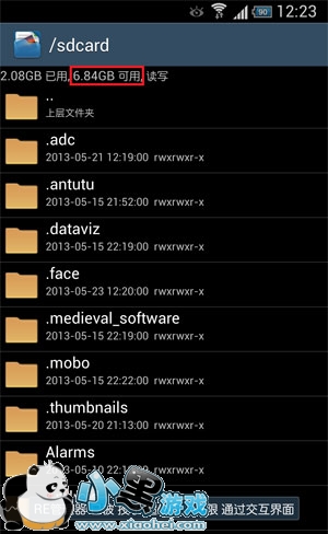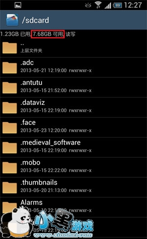 13、挂载成功后手机自带存储为7.68GB,游戏数据包被成功移动到TF卡上,而且不会影响游戏的正常运行,如下图。