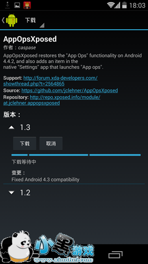2.打开Xposed安装器,并点击里面的下载,然后在下载里搜索AppOpsXposed,见下图