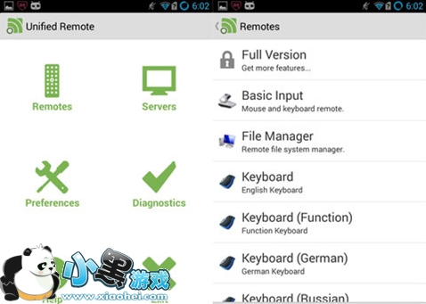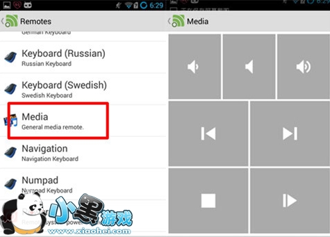 然后回到主菜单我们点击“Remotes”就可以看到它支持的遥控功能了。大家看到列表中有多种制式的键盘,还有丰富的没提播放器,如果购买了完全版的话,还可以使用更多的功能。