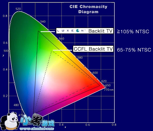 2、色彩区域取决于灯管的水平。人眼能分辨的色彩从科学上讲属于可见光的光谱范围,相当的大,显示设备只能显示一部分,为了标准,有什么sRGB,NTSC,NTSC是个老标准,通常CRT显示器和液晶显示器有70%左右,笔记本为了节能,灯管弱一点,60%就不错了,手机….灯管更弱,一般不到50%。不过随着智能手机的飞速发展,2011年以后,大部分手机也能现实72%左右的NTSC色域了。