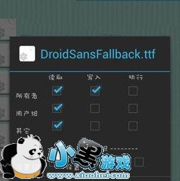 4)然后再利用刚才下载的“文件管理器”打开手机的system/fonts 然后我们再把电脑中的字体替换手机中的DroidSansFallback.ttf,然后设置权限