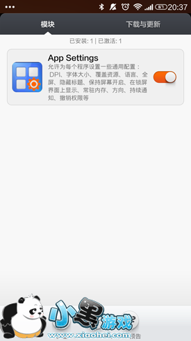 Xposed 框架只是为 Android 增加了一个扩展框架,具体的功能还需要各个模块来实现,这里咱们要使用很有人气的模块——App Settings,可以来定义各个应用的具体配置,不只是修改 DPI,从更改区域到权限管理一应俱全,可谓是必装模块。