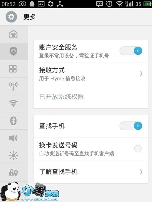 打开“设置”----“账户”,(如果还没有注册flyme账号,可以到魅族官方网站册一个,也可以在手机使用手机号登陆),如图:
