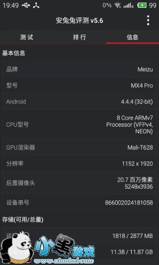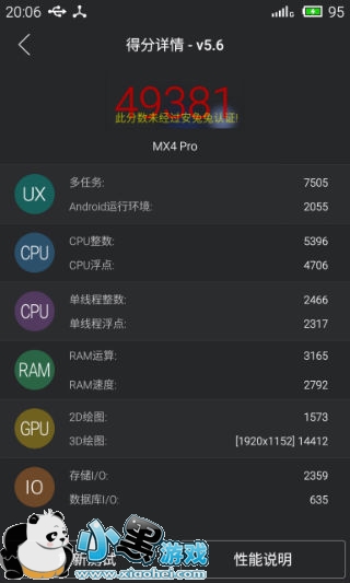 魅族MX4 Pro修改分辨率后跑分