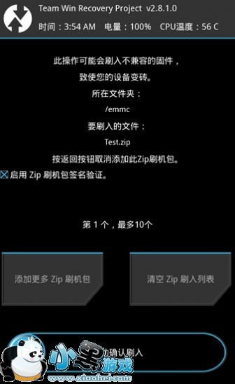 4,将会弹出一个确认的菜单,如不想添加更多的刷机包,可以直接向右滑动确认刷入(Swipe to Confirm Flash)。