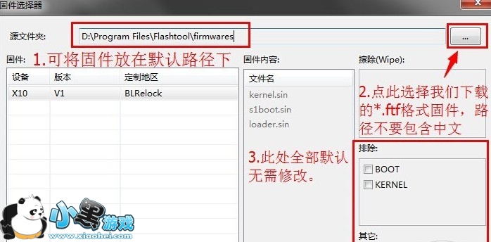 4、我们可将*ftf格式固件放在默认路径下,也可以自信新建文件夹将其路径引导至固件文件夹,点击右边的【...】选择固件文件夹。