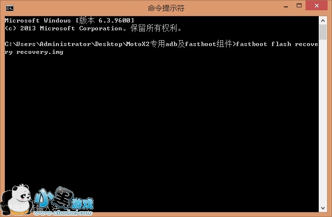 首先需要下载New Moto X专用TWRP Recovery(点击下载),下载完成后,解压下载的New MOTOX专用adb及fastboot组件压缩包,推荐放到例如E盘什么的根目录下,强烈不建议放桌面上!然后点 命令提示符.lnk 。