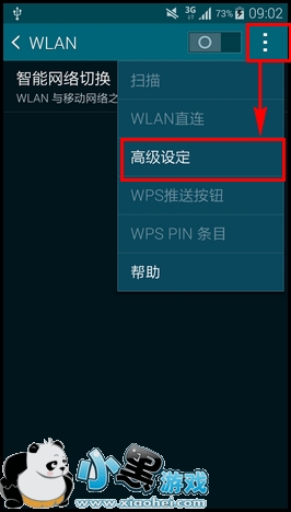 4. 点击手机右上角的【菜单】键,选择【高级设定】。