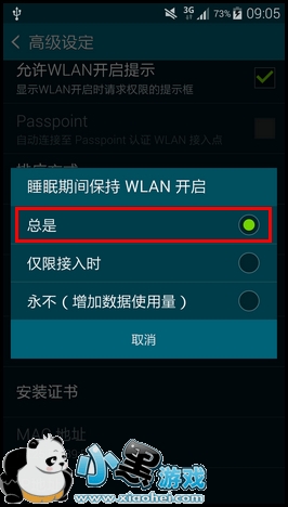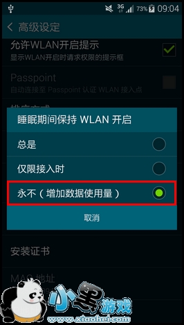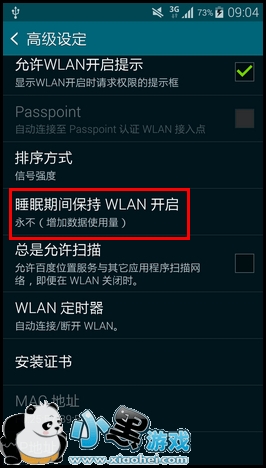 这样做固然在屏幕关闭之后WiFi网络还是可以保持自动连接,不过弊端就在于会增加手机自身的电量消耗缩短待机时间。不过小编这种常年充电党是不会有什么压力的,如果你经常需要接听电话或者外出跑业务之类的,还是建议大家不要打开黑屏保持WiFi连接的开关。