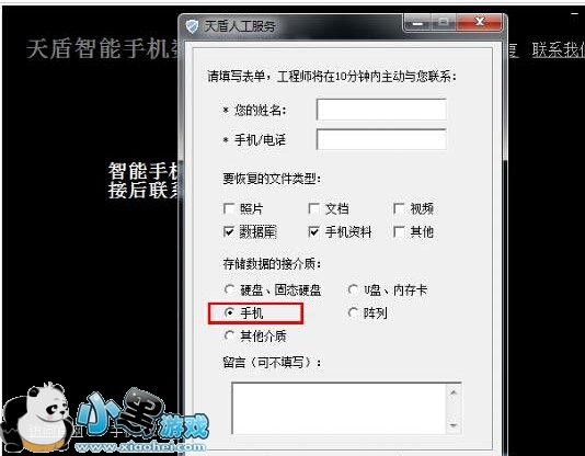 第六步:填写人工服务表单,天盾数据恢复中心的工程师会尽快跟用户联系,为用户解决手机数据丢失问题。