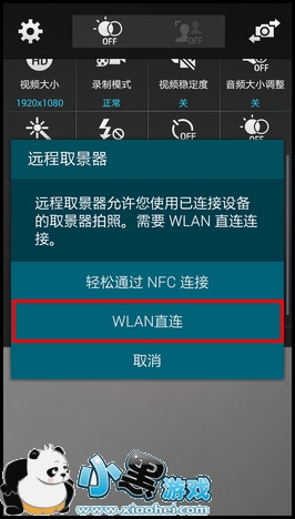 5.在弹出的“远程取景器”提示框中,选择一个连接方式,这里以【WLAN直连】为例。