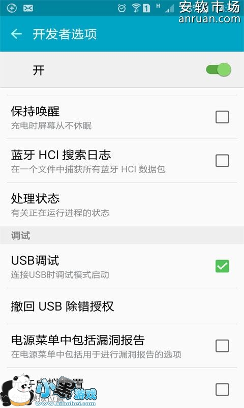打开三星S6的【设定】,选择【系统】栏的【开发者选项】,然后勾选【USB调试】就可以了。(如下图)