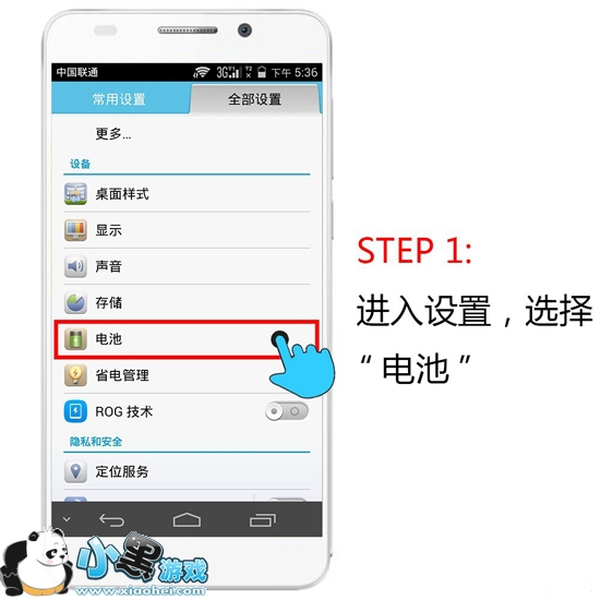 Step 1:进入设置,选择“电池”