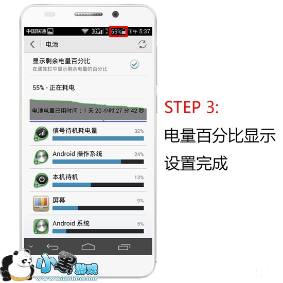 Step 2:我们可以看到显示电量百分比的选项,把开关打开即可