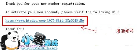 4)前往注册邮箱查看激活邮件(发件人为register@htcdev.com),点击链接激活帐号: