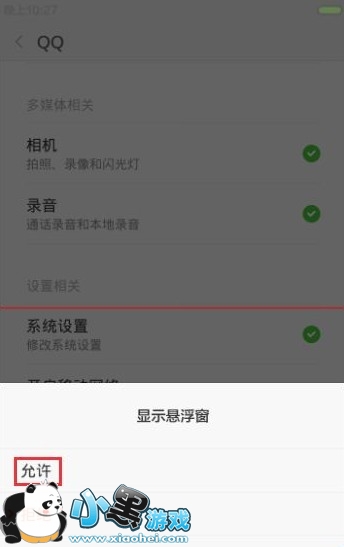 5、比如我们点击【QQ】,可以进入QQ权限列表,并可以发现QQ未开启显示悬浮窗功能,如下图所示。