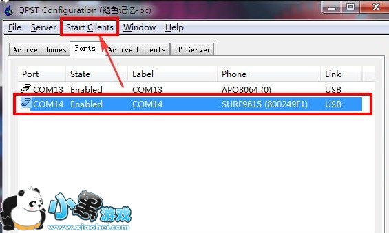 5、两个端口中只有一个是可读写的,我的是COM14,选定端口后,再选箭头所指