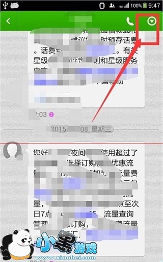 4、系统就会自动的为我们打开了这个号码发送的所有信息,是以聊天窗口的方式展示的,我们点击右上方的“圆形+三角形”标识。