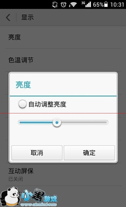 6、将自动调节亮度之前的勾去掉,选择确定后,手机就不会出现忽明忽暗的现象了。
