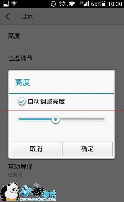 5、点击亮度,手机界面上跳出了调节亮度的小窗口。我们可以发现其中的“自动调节亮度”是被勾选的。
